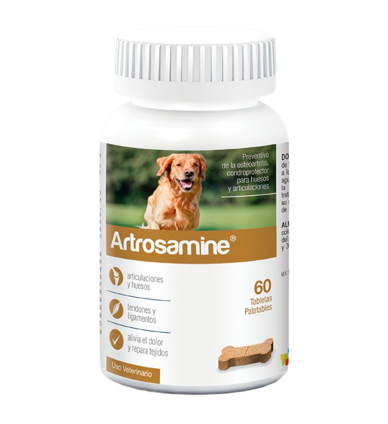 Artrosamine es un suplemento nutricional oral en tabletas altamente palatables para perros. Es un condroprotector formulado para fortalecer la salud de huesos y articulaciones, especialmente en animales con desgaste articular, problemas de movilidad o asociados al envejecimiento.