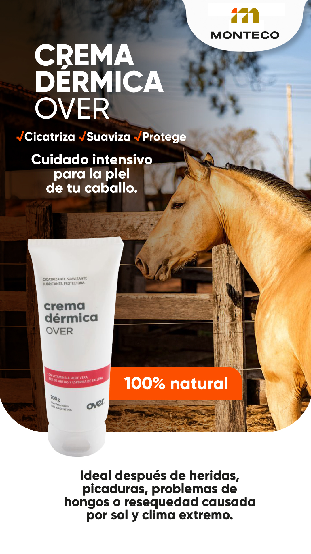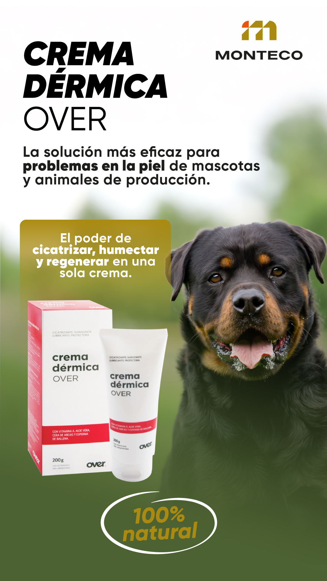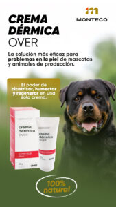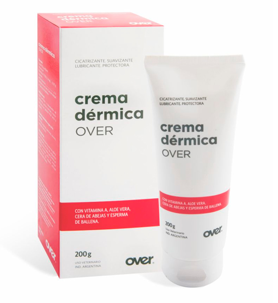 CREMA DÉRMICA OVER es un producto tópico de uso externo, formulado como cicatrizante, suavizante, lubricante y protector cutáneo para animales.