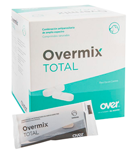 Overmix Total es un antiparasitario interno de amplio espectro formulado en comprimidos saborizados, diseñado específicamente para caninos. Este producto actúa eficazmente en el tratamiento, control y prevención de parasitosis internas causadas por nematodos, cestodos y filarias.